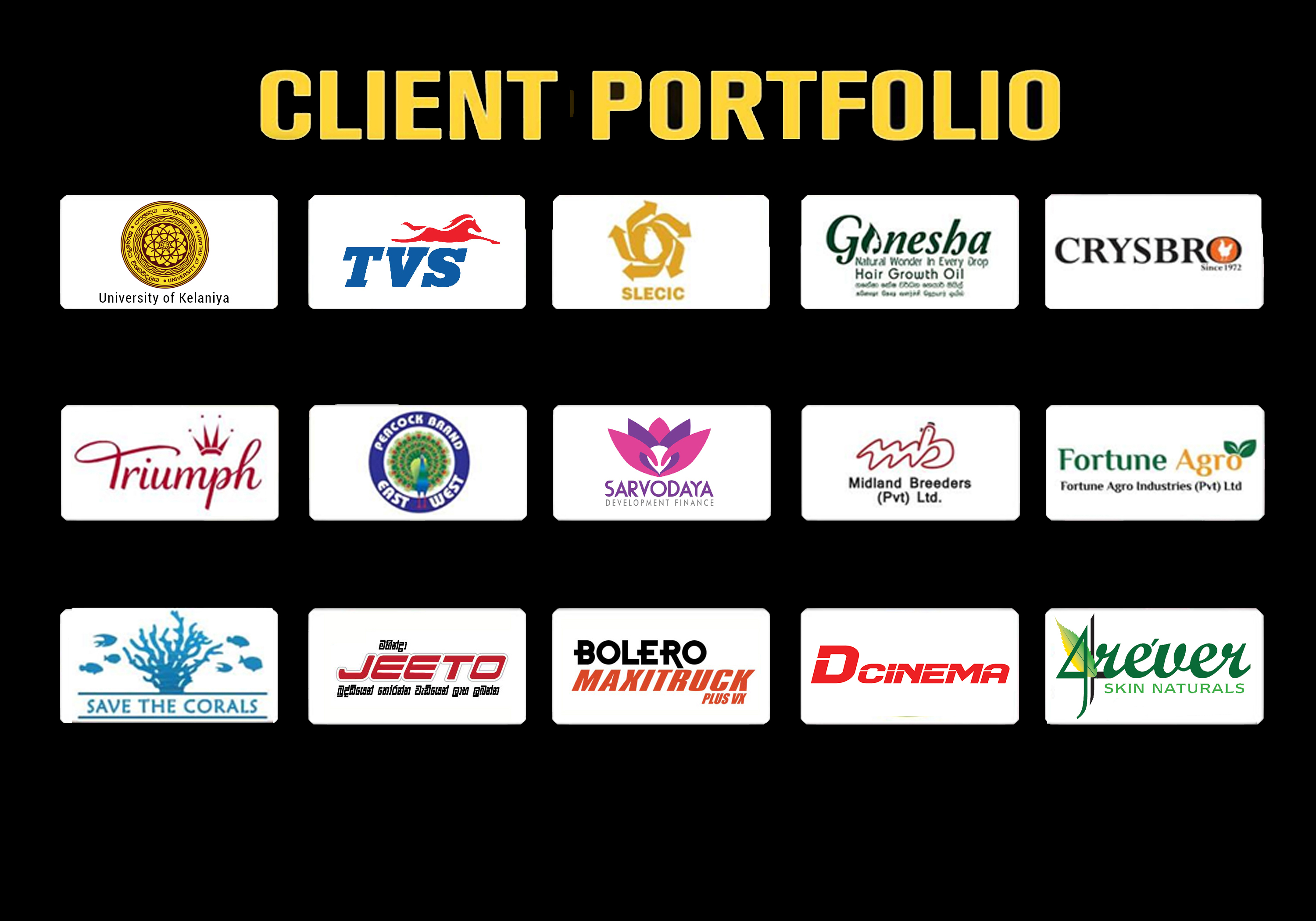 We are uniquely positioned with tri-lingual concept development, as well as 3600 execution, through our in-house Audio-video, cinema, 2D and 3D animation capabilities, social media, on-ground activaton and media innovations. While employing the best of talent, we are also consumers in all parts of Sri Lanka.